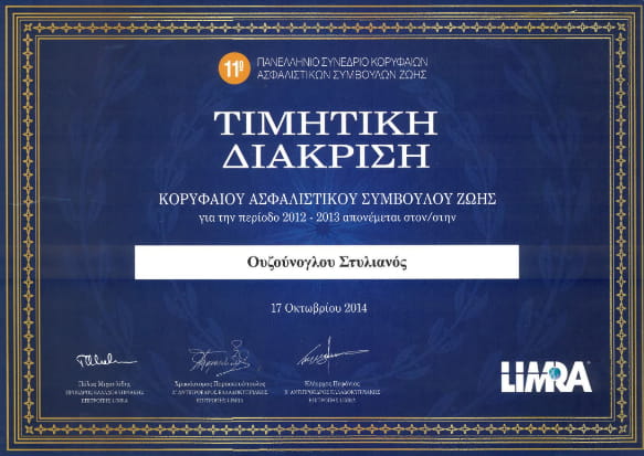 Από το 2016 ισόβιο μέλος της Limra International. Επί σειρά ετών τιμητικές διακρίσεις από την ERGO ασφαλιστική, ΑΤΕ ασφαλιστική.